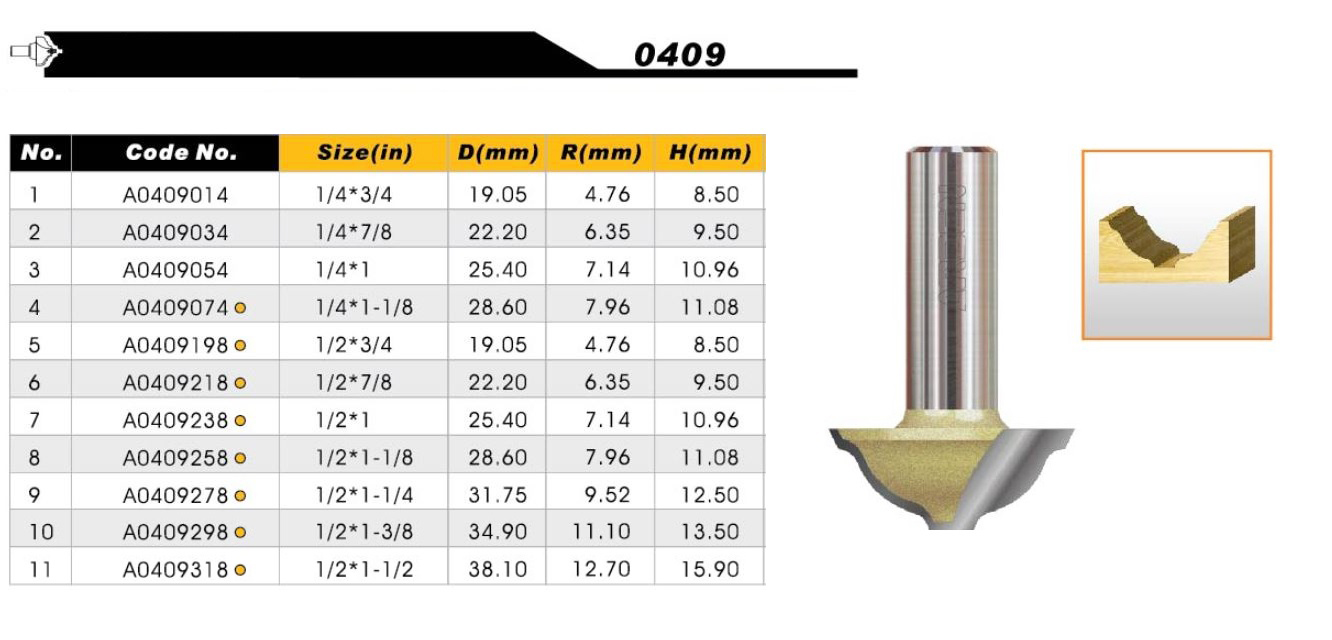 A0409 – Mũi phay gỗ cốt 1/4″(6.35mm) và 1/2″(12.7mm) ARDEN