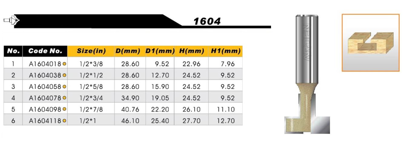 A1604 – Mũi phay gỗ cốt 1/2″(12.7mm) ARDEN