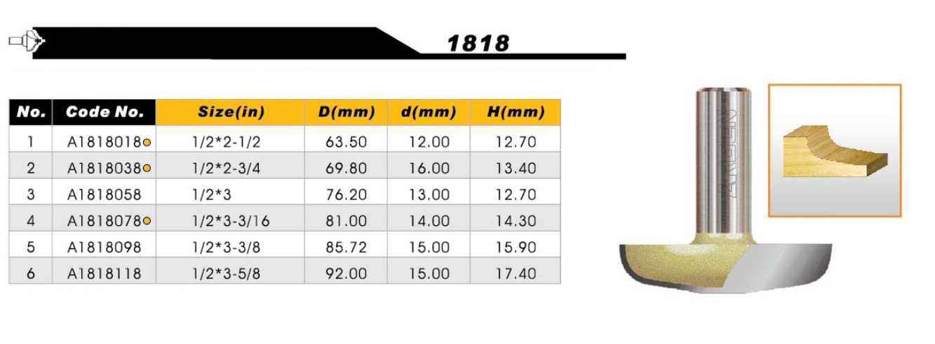 A1818 – Mũi phay gỗ cốt 1/2″(12.7mm) ARDEN